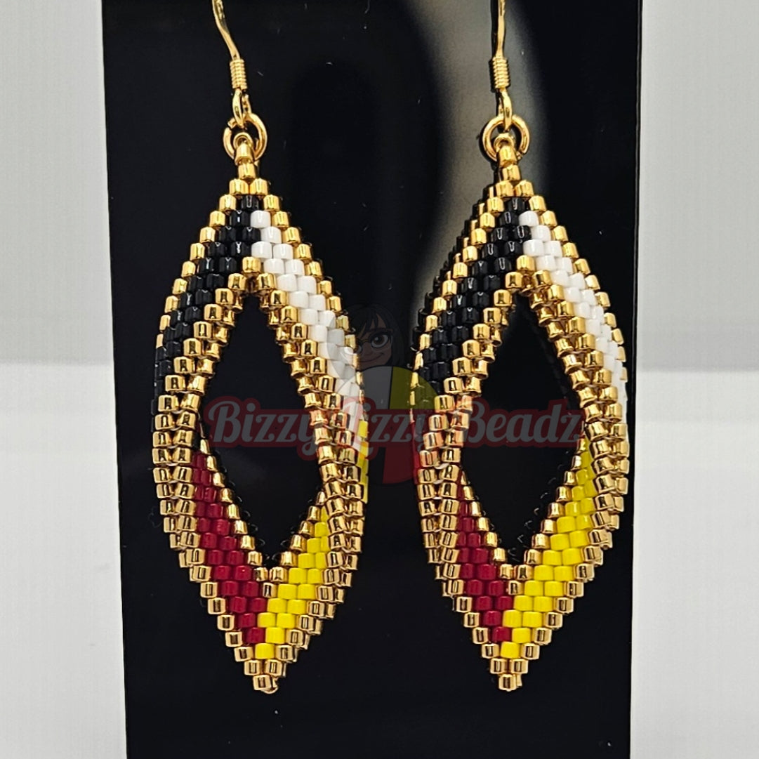 Folded Peyote stitch. Lined with 24k gold plated delicas. On 24k gold plated hooks.